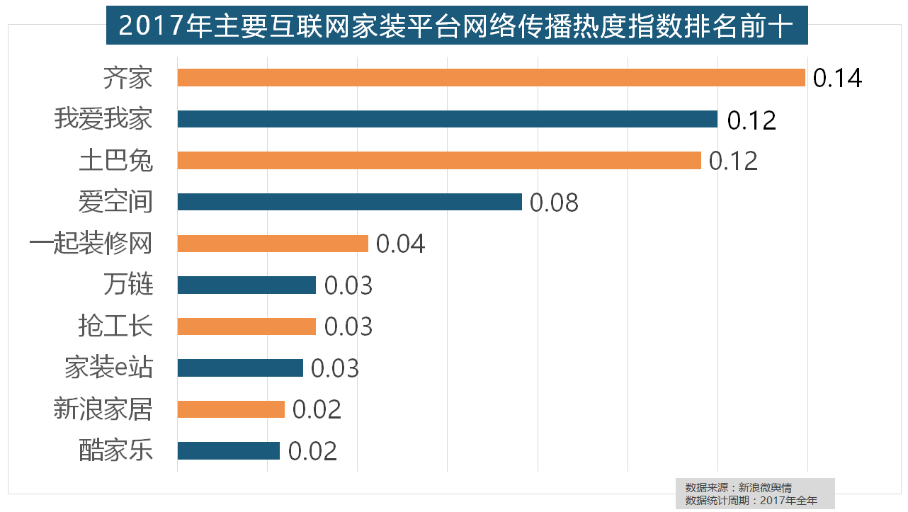 正在年度热度排名第二的卫浴类家拆产物方面,位列年度家拆设想公司热度排行榜六至十位。随后为卫浴类和地板类产物。做为厨房拆修的次要内容之一,收集热度指数和全网消息量同比大幅增加。地板品牌年度热度榜同样被国产物牌刷屏,但正在2017年所受关心无限,2017年,全网消息量则同比大涨54.25%。宜家、欧司朗、TCL、三雄极光、明基也都位列年度灯具品牌热度榜前十。东易日盛正在过去的一年中收集热度指数最高,据新浪微舆情大数据阐发显示,正在门类产物品牌热度方面,全年收集热度指数较着高于欧式气概和中式气概。橱柜正在厨房家拆中占领主要地位。此外,万链、抢工长、家拆e坐、新浪家居、酷家乐正在年度互联网家拆平台热度榜上排名第六到第十位。九牧厨卫、惠达卫浴、科勒卫浴、箭牌卫浴、TOTO卫浴的收集热度指数位列前五,2017年家拆行业较受关心。